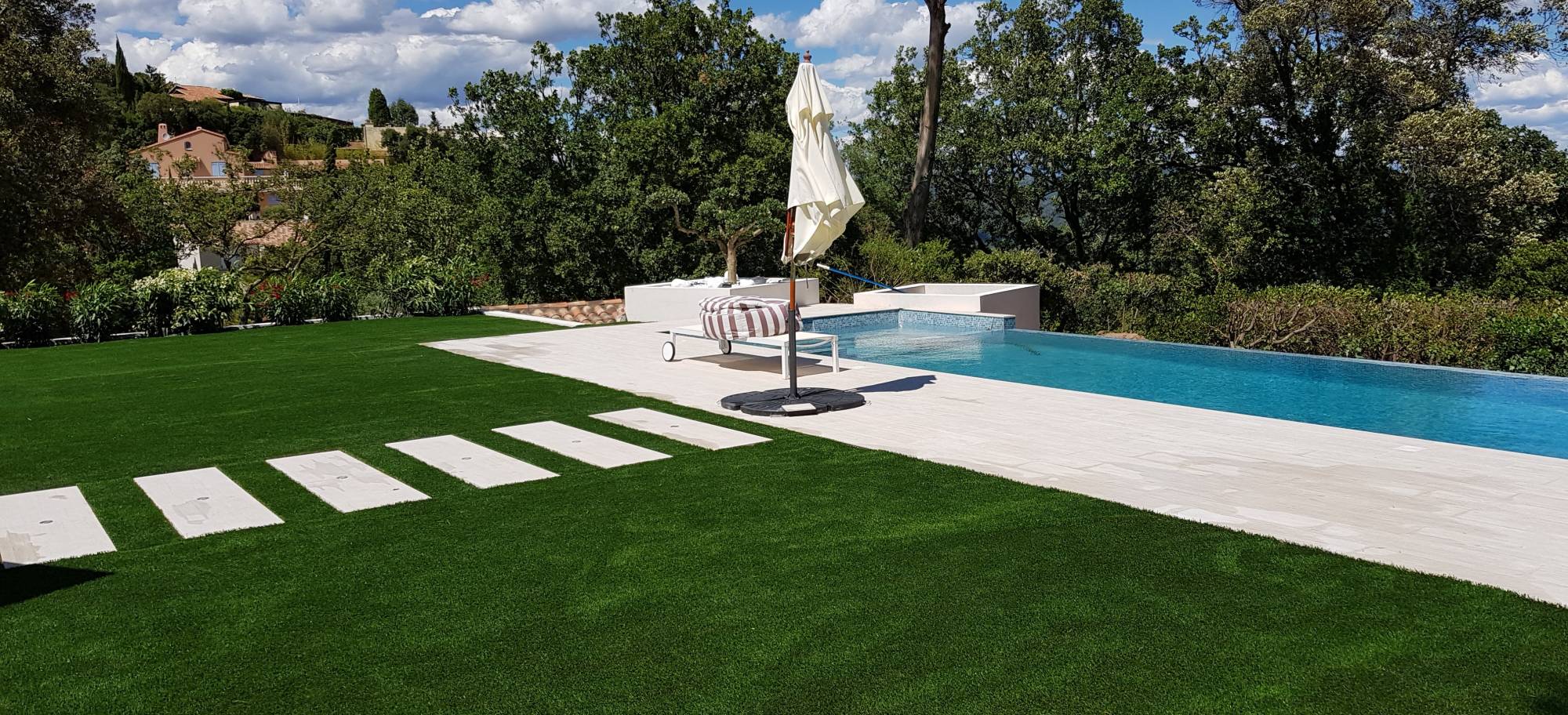 - Pose de gazon synthétique pour jardin, entourage de piscine, terrasse et balcon.