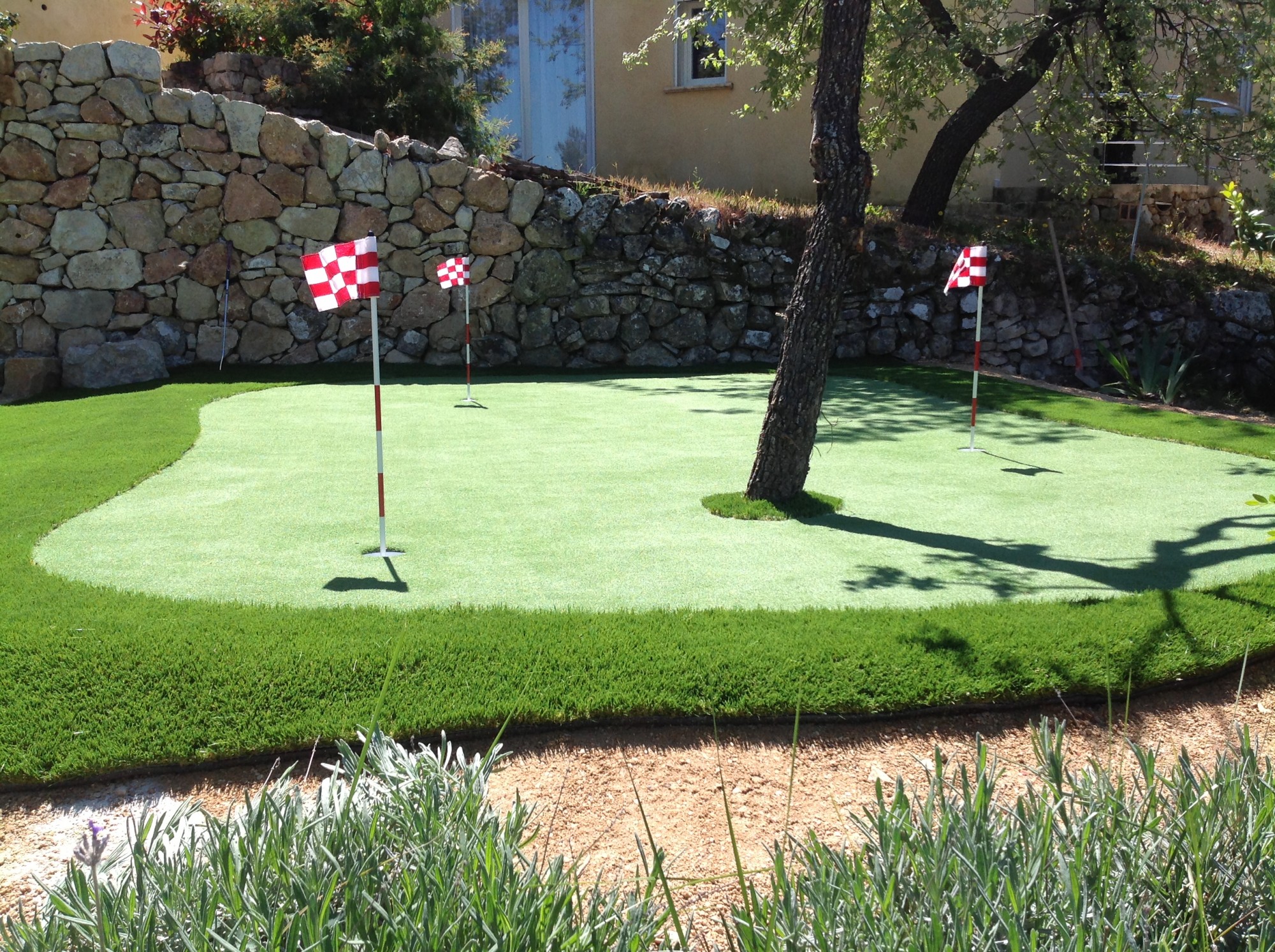 Reconnue pour son savoir-faire, notre société a équipé plusieurs golfs en gazon synthétique. Parmi nos plus belles réalisations, nous sommes très heureux de compter le parcours pitch and putt du Golf de Bouc-Bel-Air (entre Marseille et Aix en Provence) au village Oxylane Décathlon où plus de 42 000 m2 ont été installés.