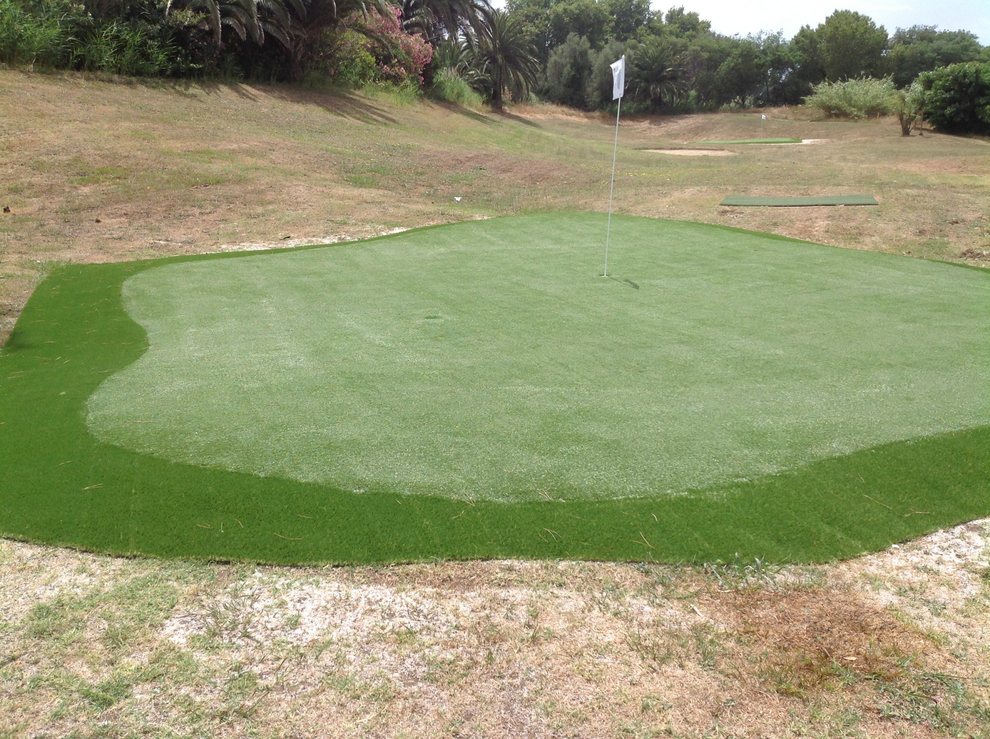 Univers gazons a remplacé à pour le complexe hôtelier soleil et Vacances de Grimaud dans le Var les greens naturels en greens synthétiques.