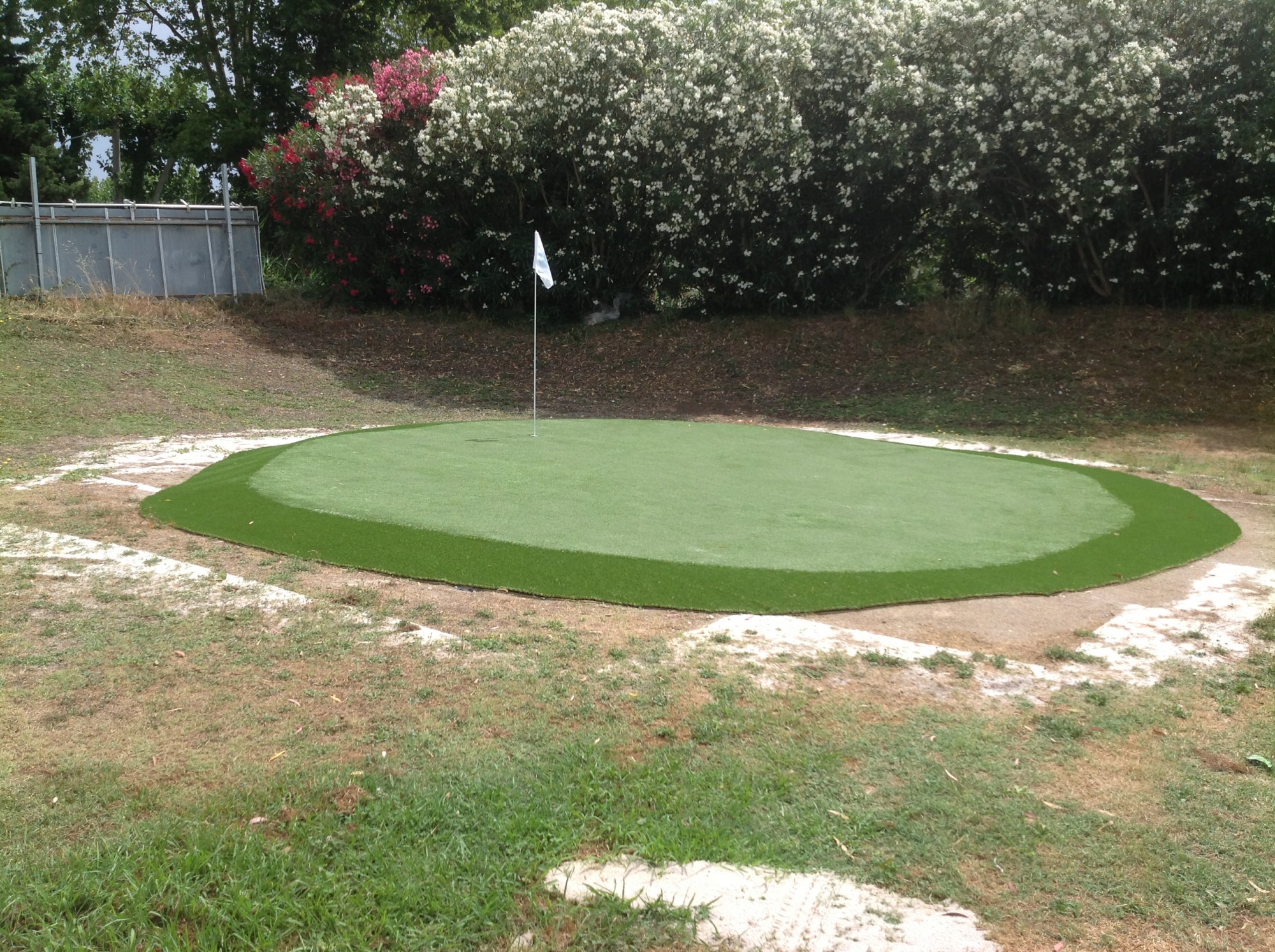 Nous avons réalisé le putting green en légère surélévation pour l’évacuation de l’eau.