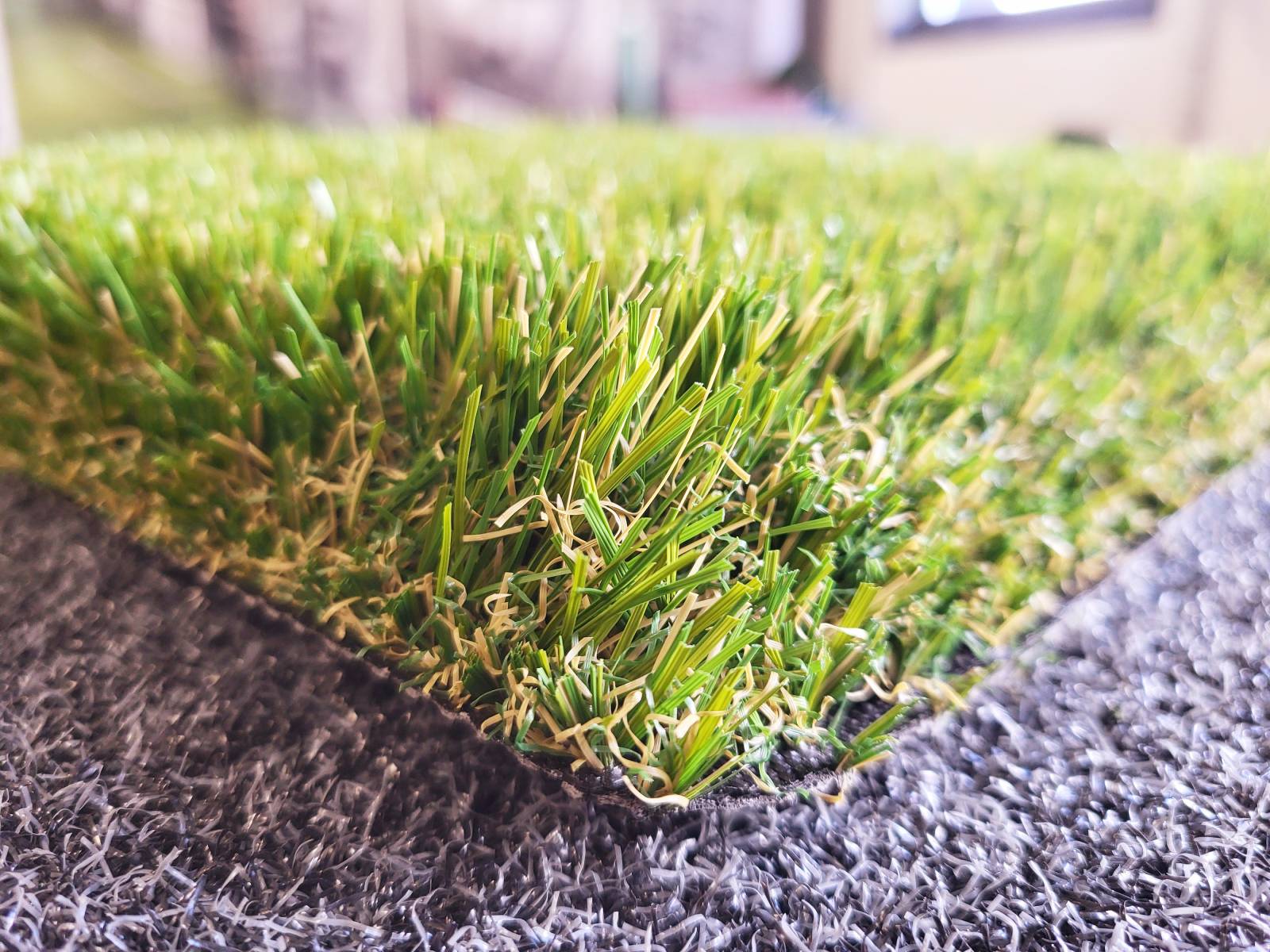 Il s’agit d’un pelouse synthétique de 40 mm d’épaisseur avec un mélange de 2 types fibres (droites et frisées) ainsi que 4 couleurs pour ressembler au maximum à un gazon naturel épais et bien entretenu.
