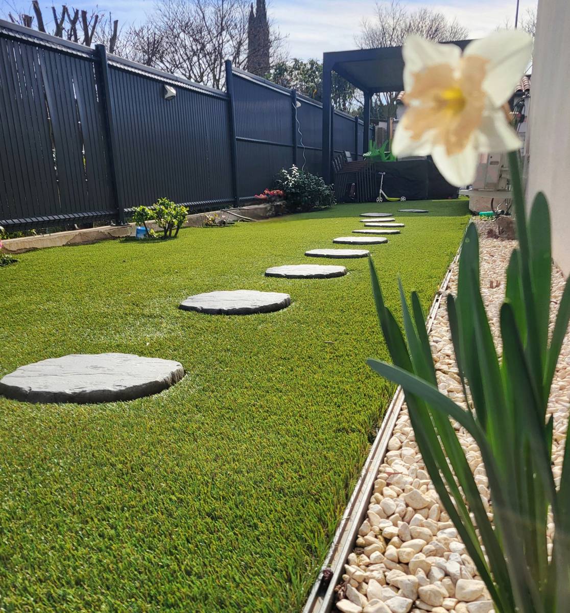 Un gazon qui revient à sa place lorsque l'on marche dessus, conçu pour une utilisation régulière.