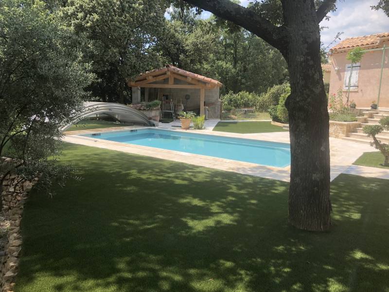 jardin, mettre votre piscine en valeur ; cet investissement vous permettra de faire des économies d’eau, de produits chimiques et de matériels de jardinage : une économie financière, une action écologique et vous économisez vos forces tout en ayant le temps de profiter de votre aire de détente qui restera propre et verdoyante quelle que soit la saison.