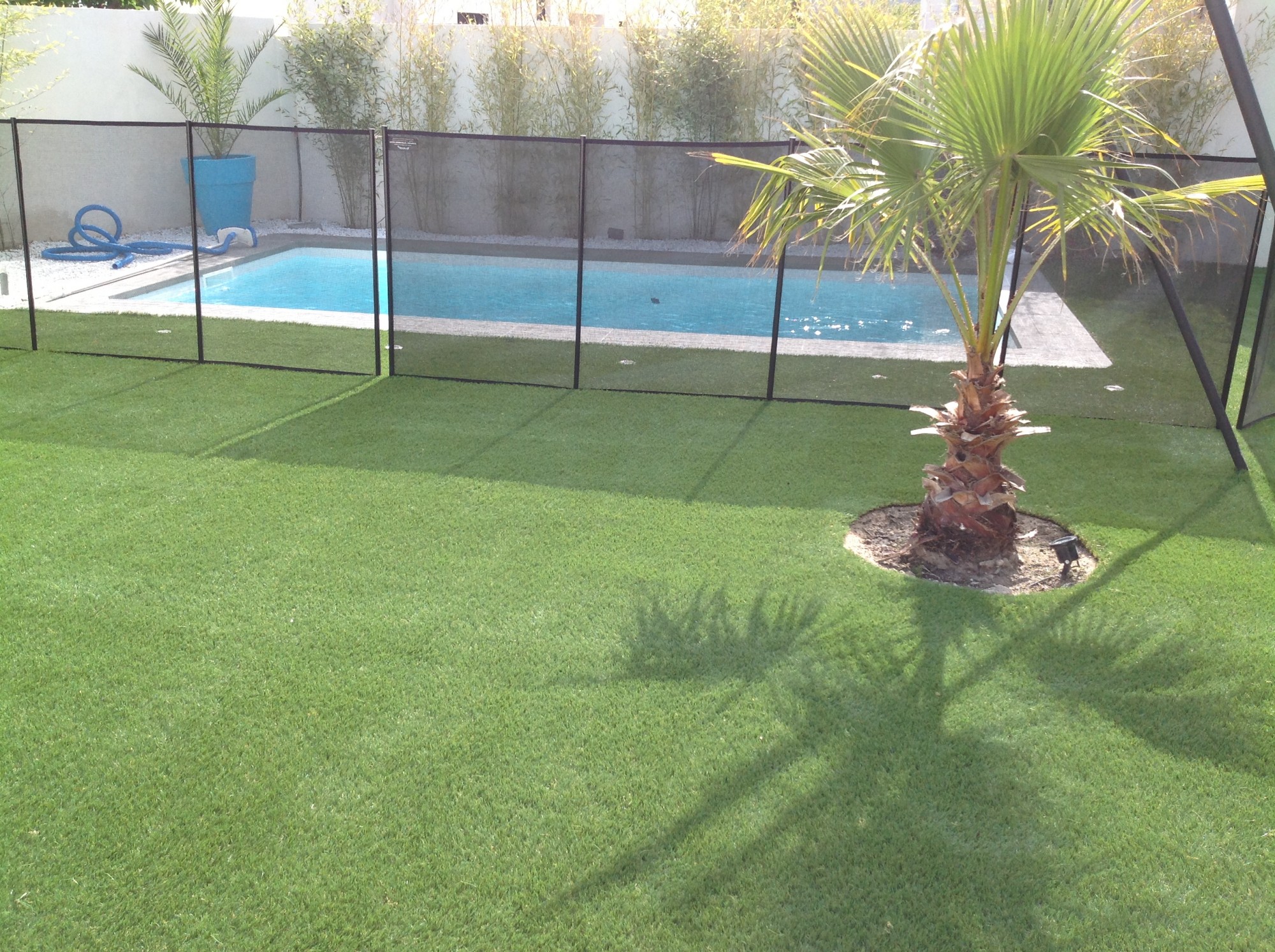 La pelouse artificielle est de plus en plus utilisée dans les jardins et les entourages de piscines, car elle permet d’avoir une surface propre sans eau et très peu d’entretien. Autre avantage, vous n’avez pas besoin d’utiliser de produits phytosanitaires, de l’arroser ou de la tondre. Elle garde un aspect vert et soigné toute l’année si vous la débarrassez des feuilles mortes ou autres déchets verts pouvant venir s’y déposer.