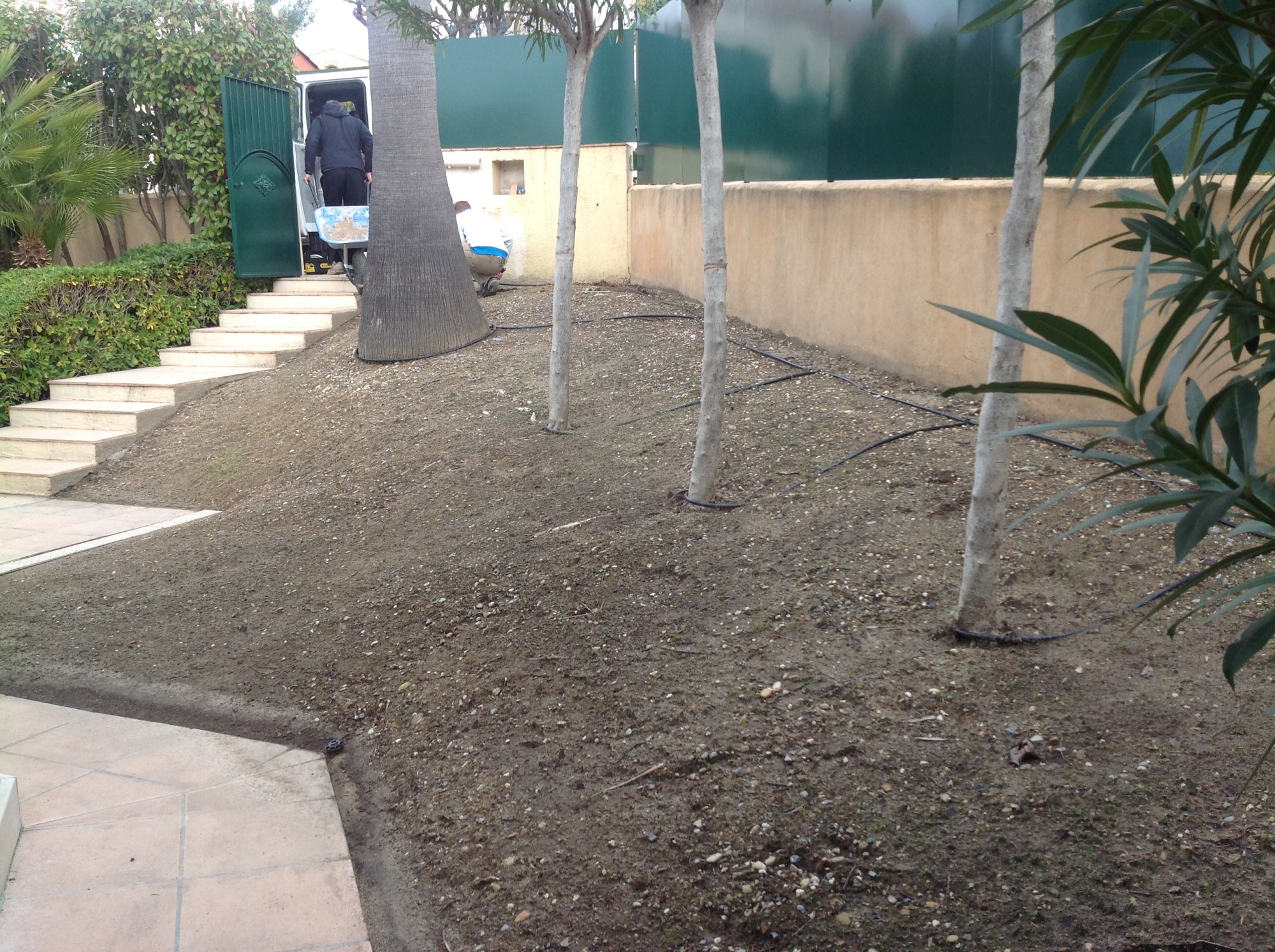 Cette pelouse a été posée à l’entrée d’une villa sur un terrain très accidenté.