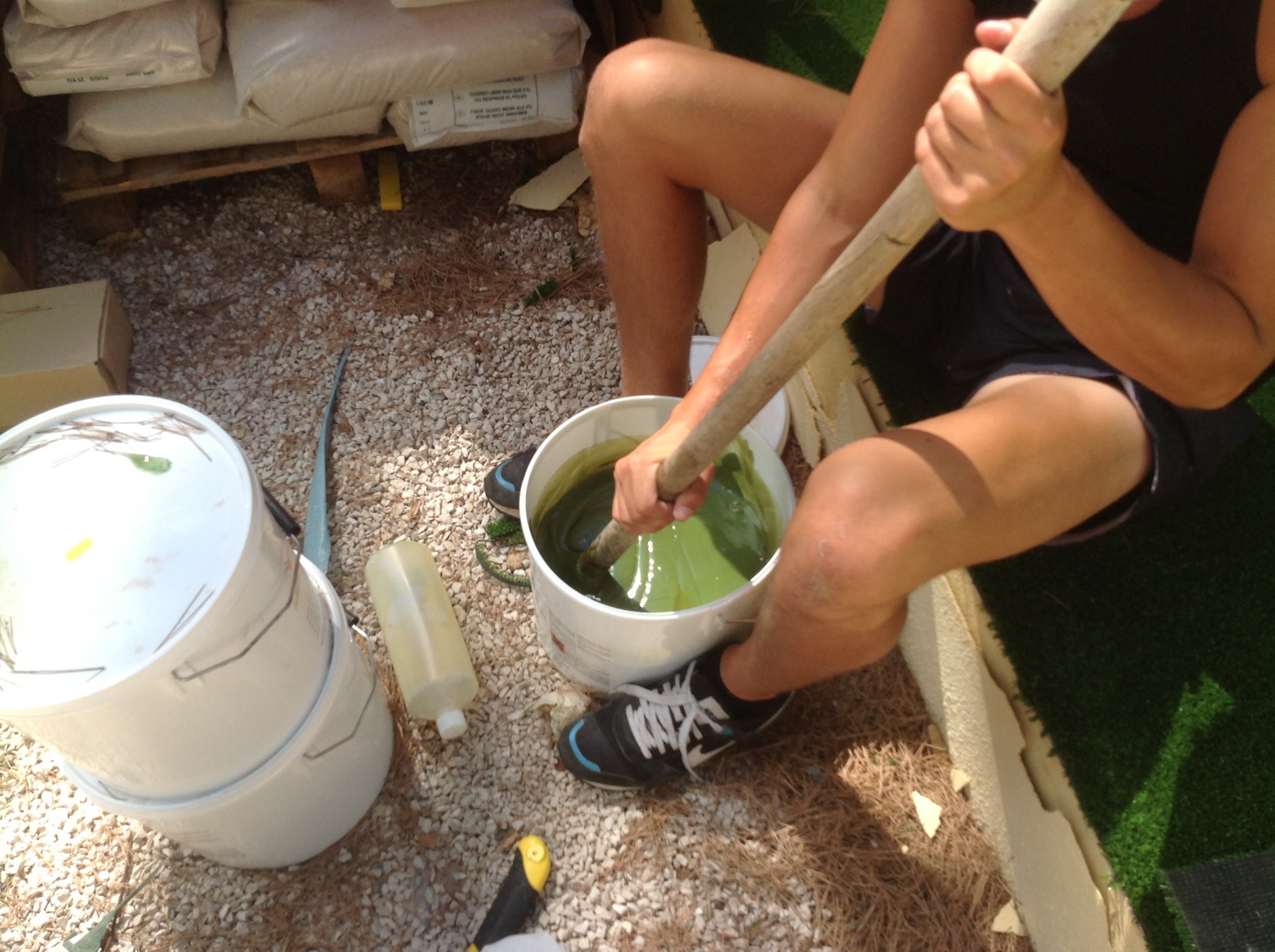 Pour ce faire nous avons utilisé le Pro Turf 12 mm 100 % polyéthylène spécialement conçu pour le la pratique de ce sport.