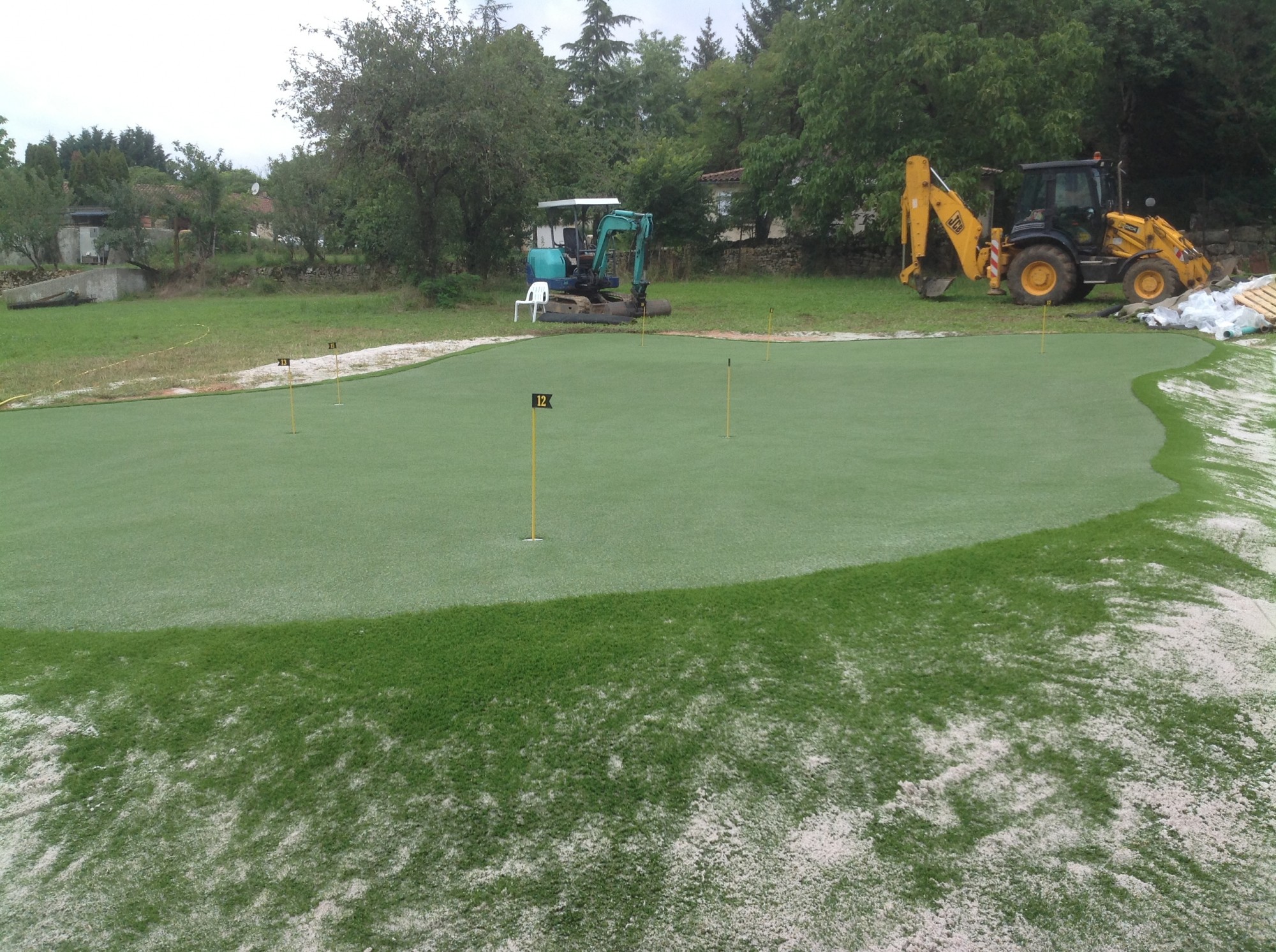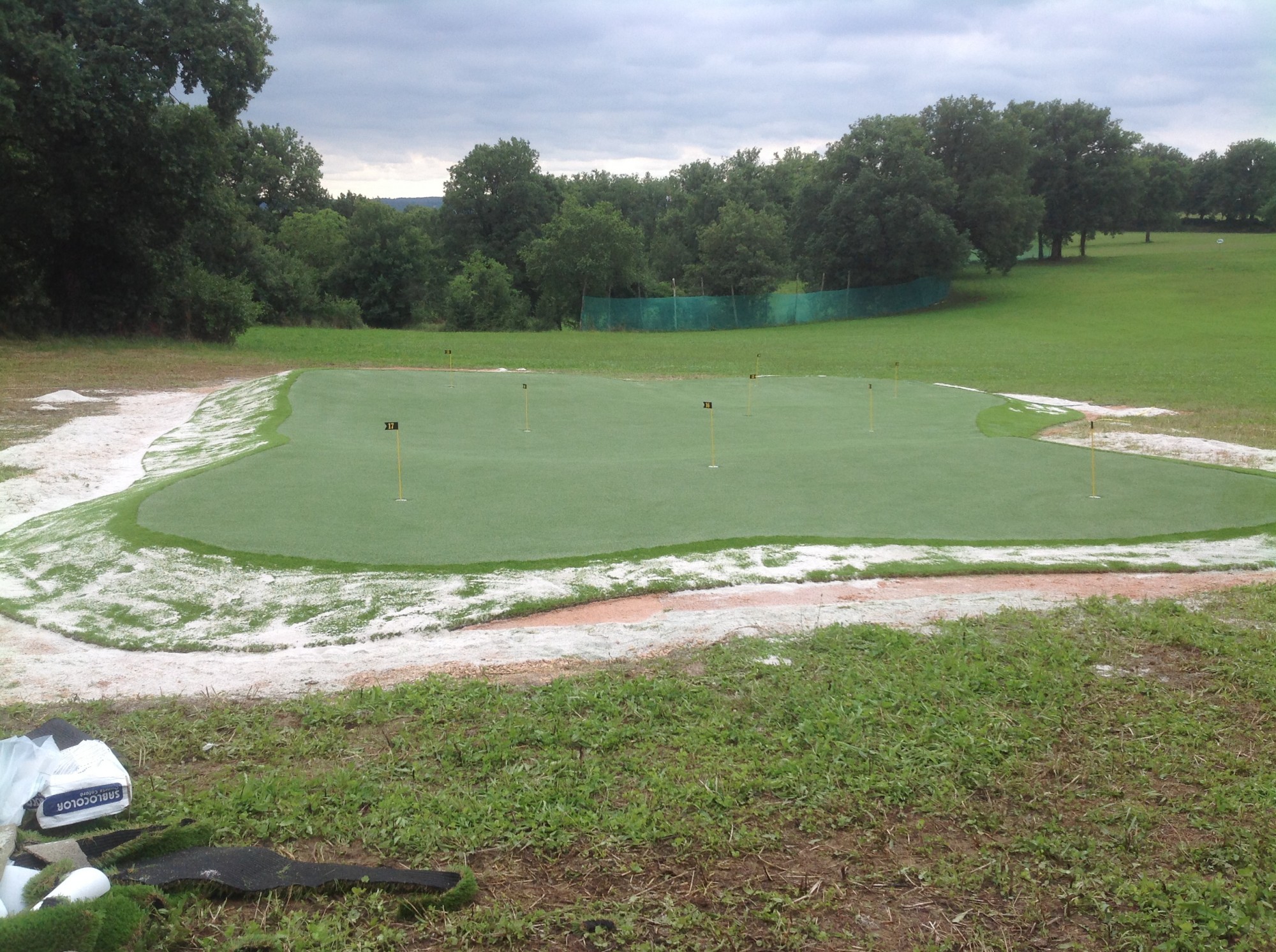 Installation d’un green synthétique d’entraînement de 250 m² au golf de l’oasienne à Figeac dans le Lot.