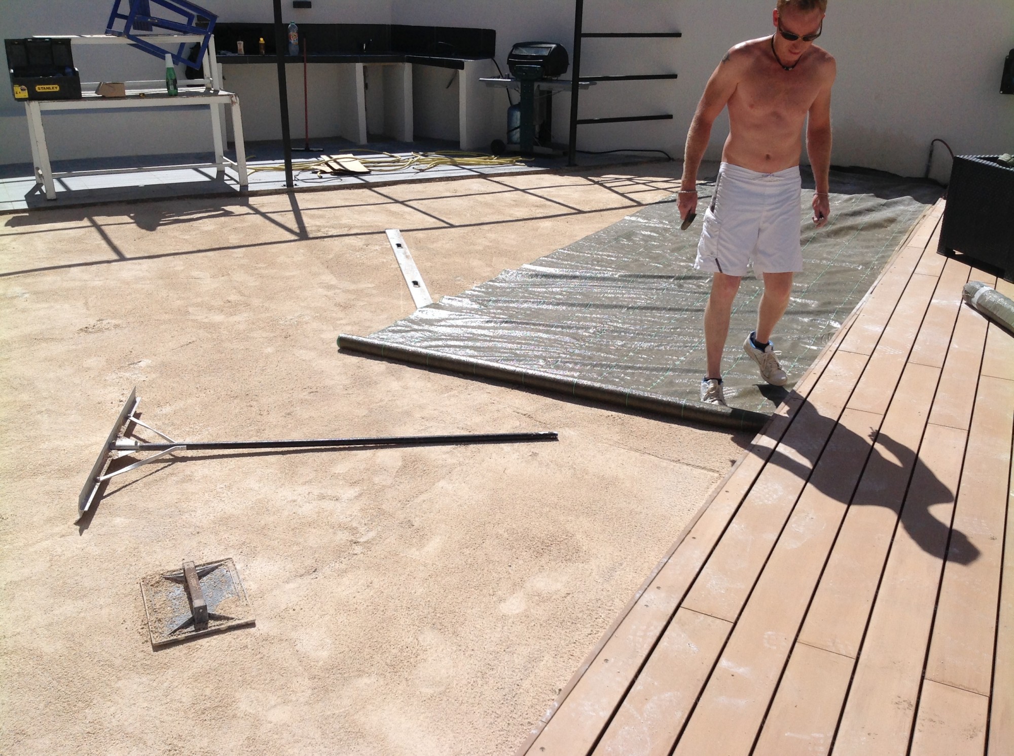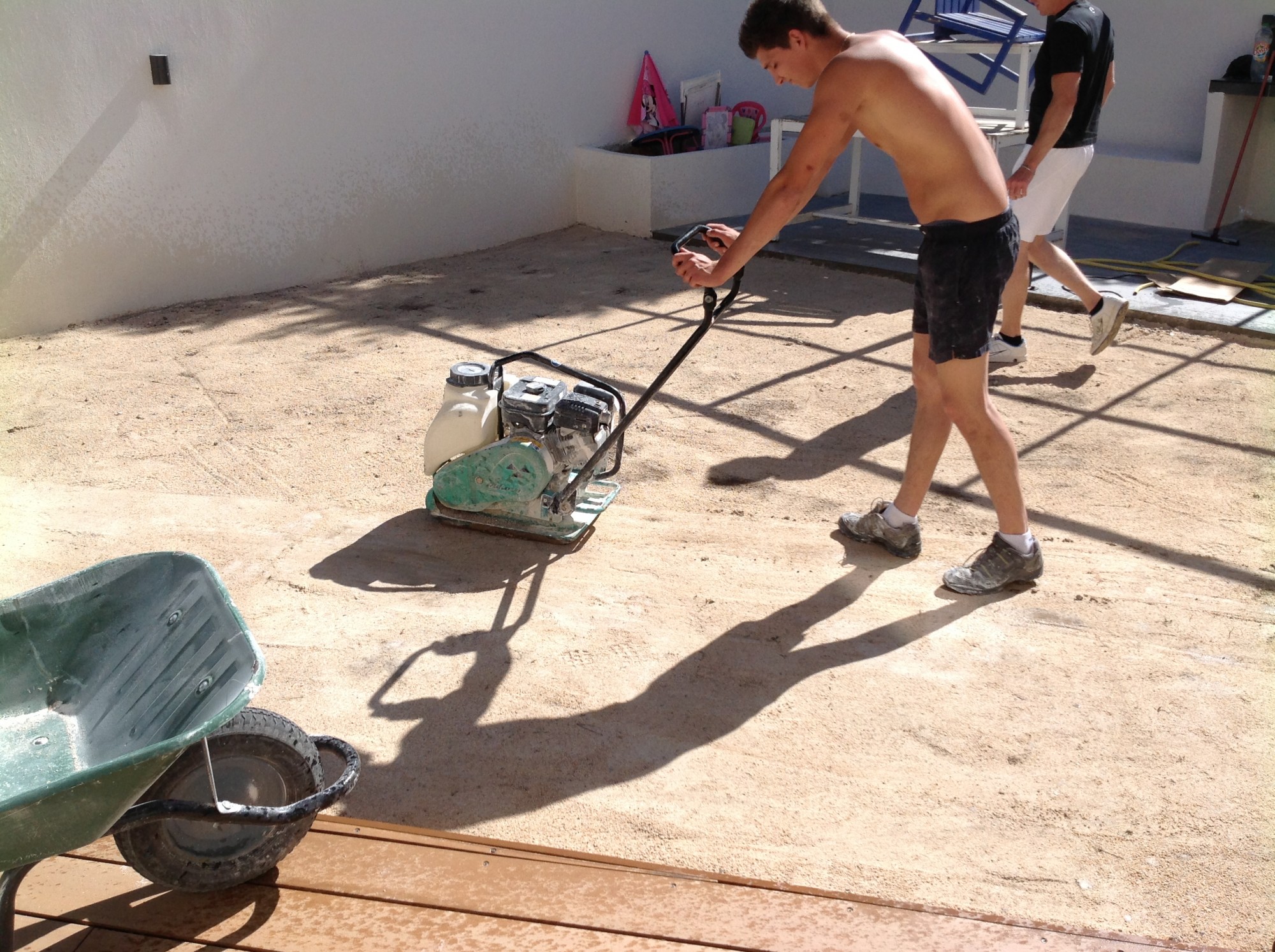 Puis, nous avons étalé une couche de sable de qualité sur le sol compacté.