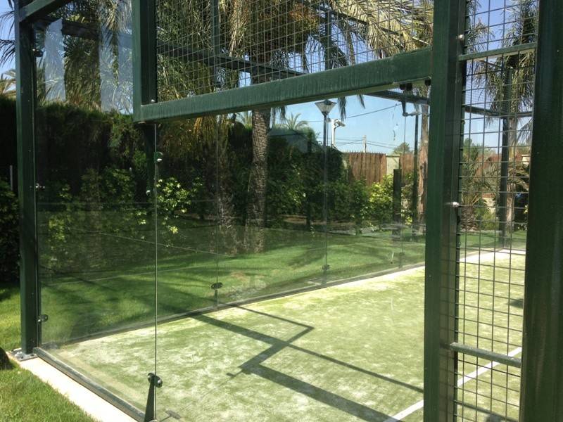 Il dispose des mêmes caractéristiques que la piste de padel classique mis à part sur les fonds de courts.