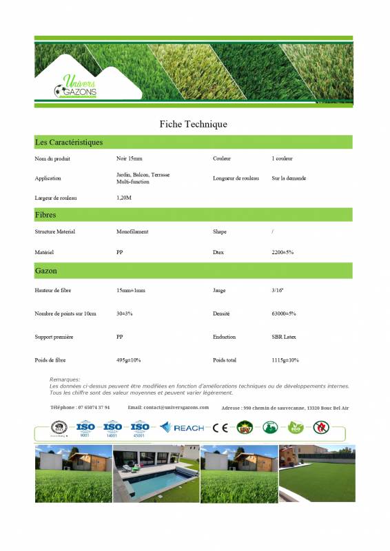 Univers Gazons vous présente le gazon synthétique Noir 15 mm.