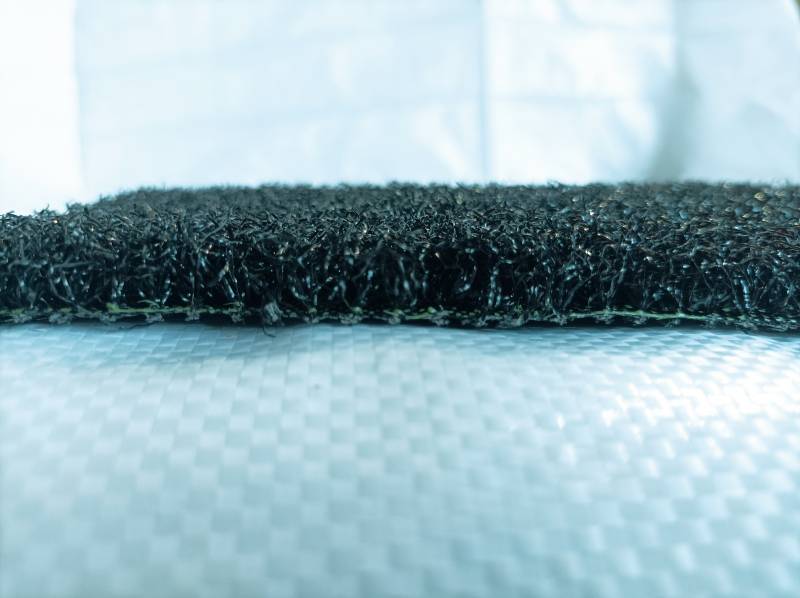 Le gazon synthétique Noir 15 mm est composé de fibres droites 100% polyéthylène et de fibres frisées afin d'apporter une bonne souplesse au produit.
