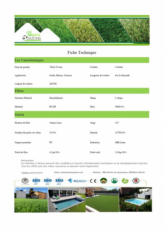 Univers Gazons vous présente le gazon synthétique Oasis 18 mm.