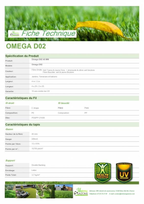 L'oméga 45 mm est composé de fibres droites 100% polyéthylène très agréable au toucher et a la vue.