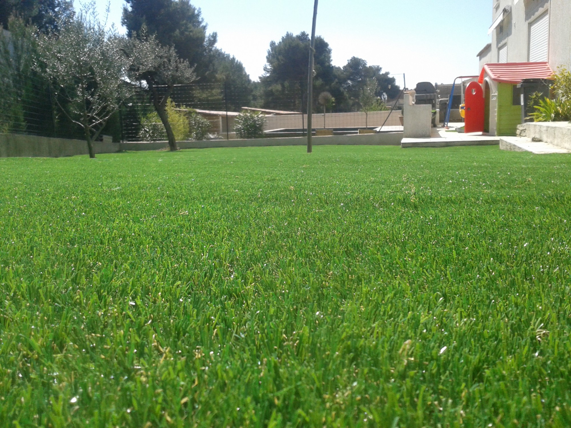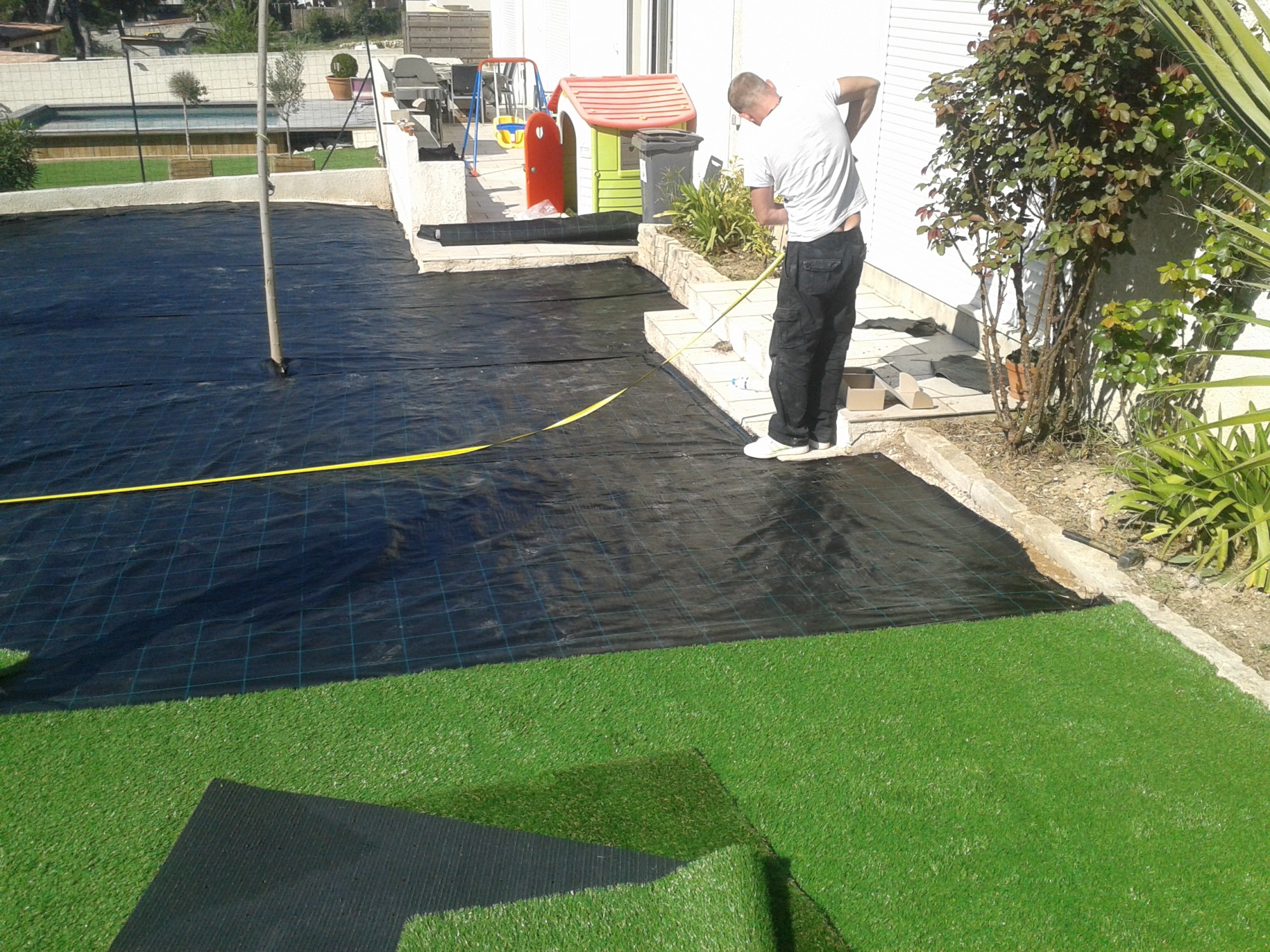 Notre équipe de poseur de gazon synthétique a installé 150 m² de gazon synthétique h grass 32 mm dans un jardin à Toulon.