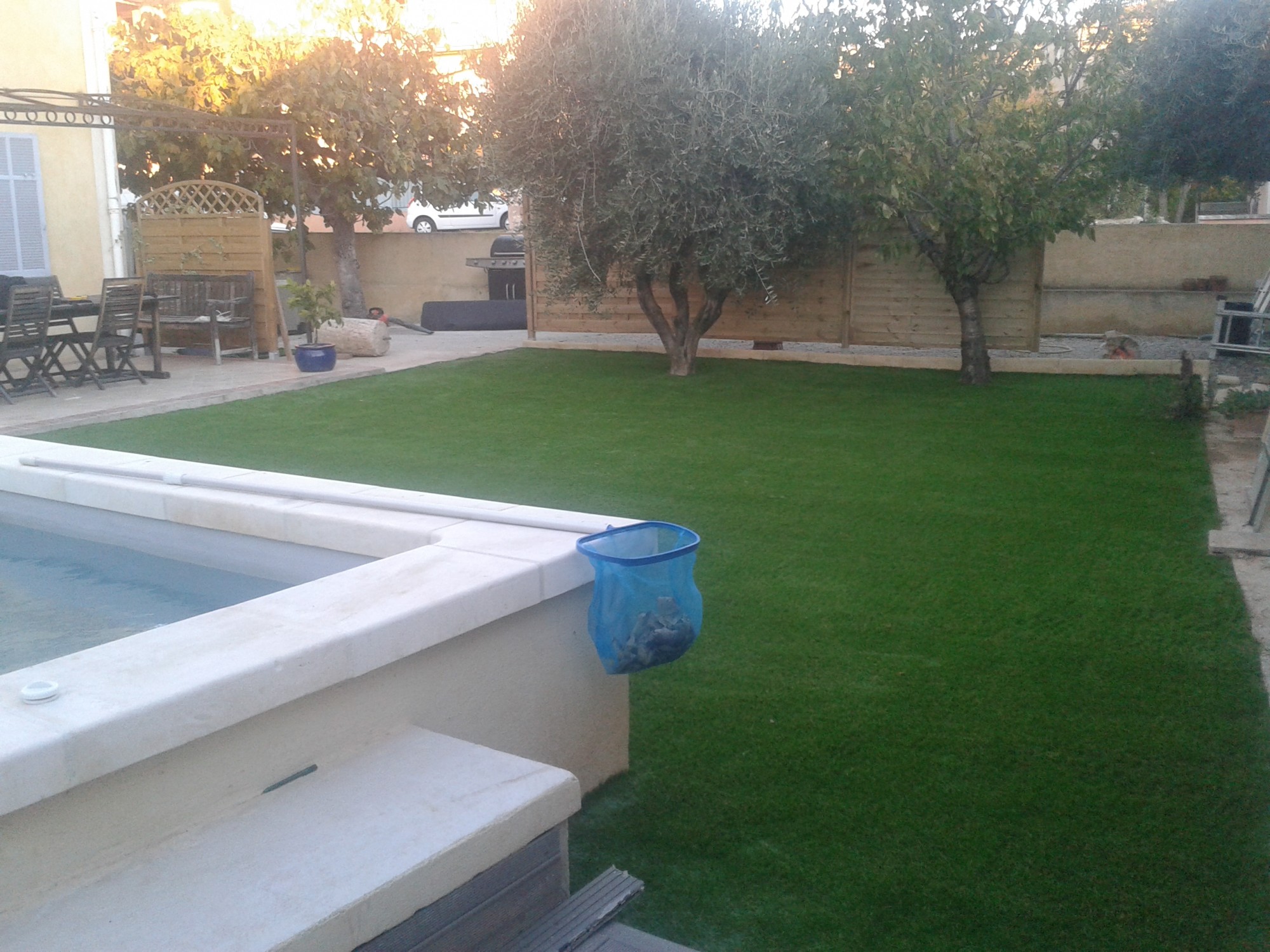 Universgazons a installé à Vitrolles près de Marseille 100 m² de gazon synthétique 20 mm pas cher à 9,95 € T.T.C. / m².