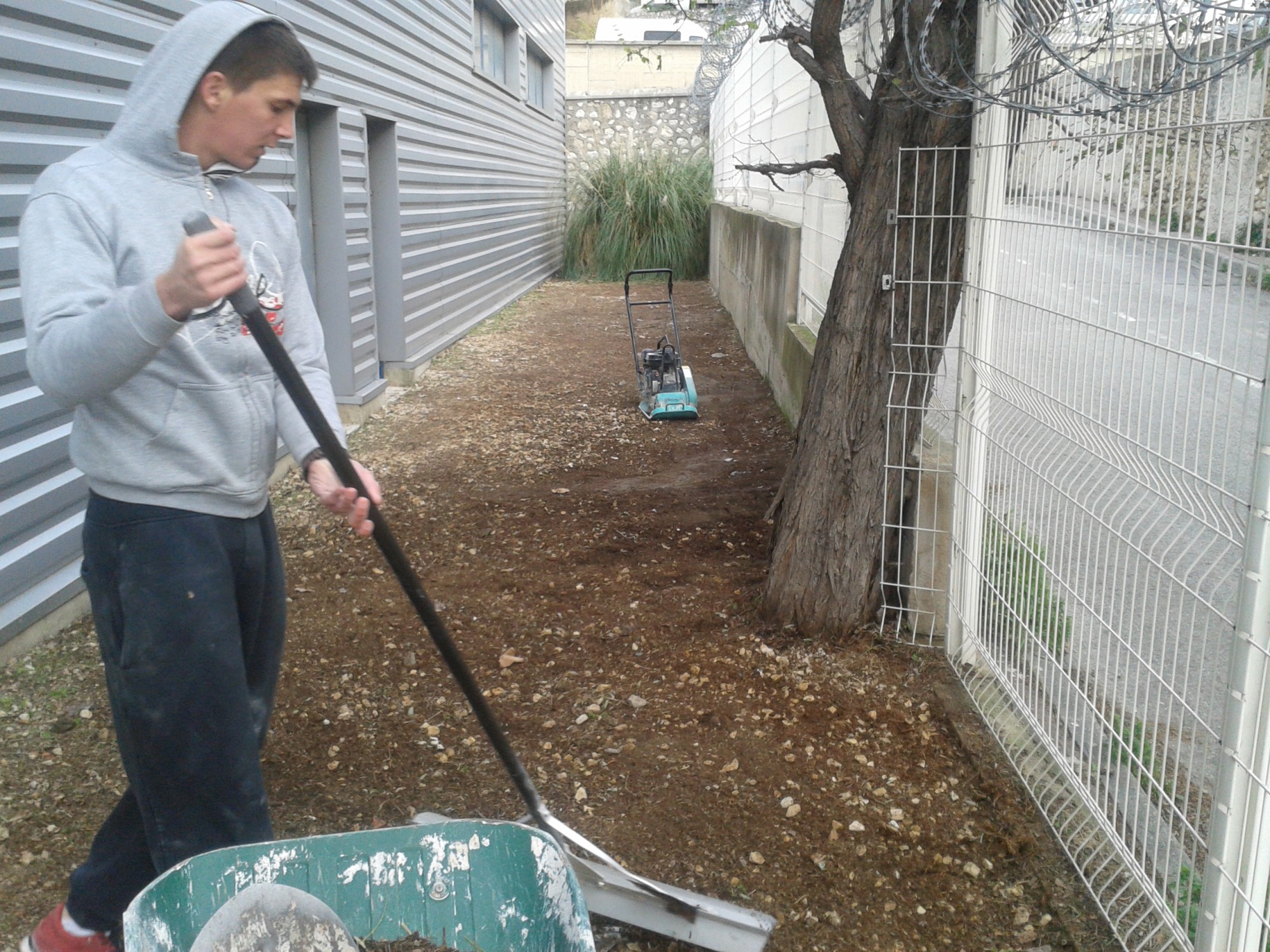 Nous avons tout d’abord enlevé toute l’herbe existante à l’aide d’une débroussailleuse.