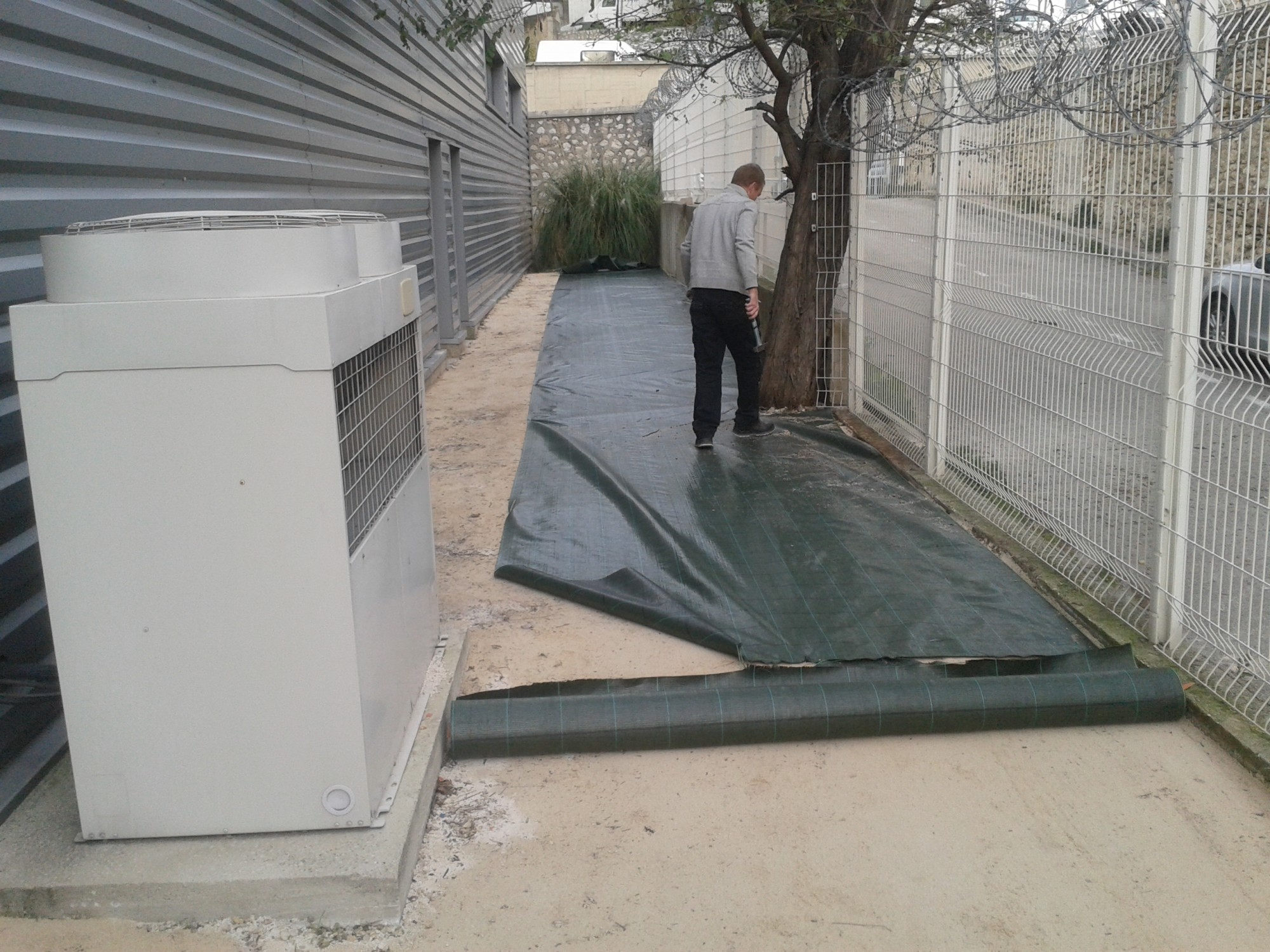 Pour éviter aux mauvaises herbes de repousser, nous utilisons une toile de paillage anti-repousse.