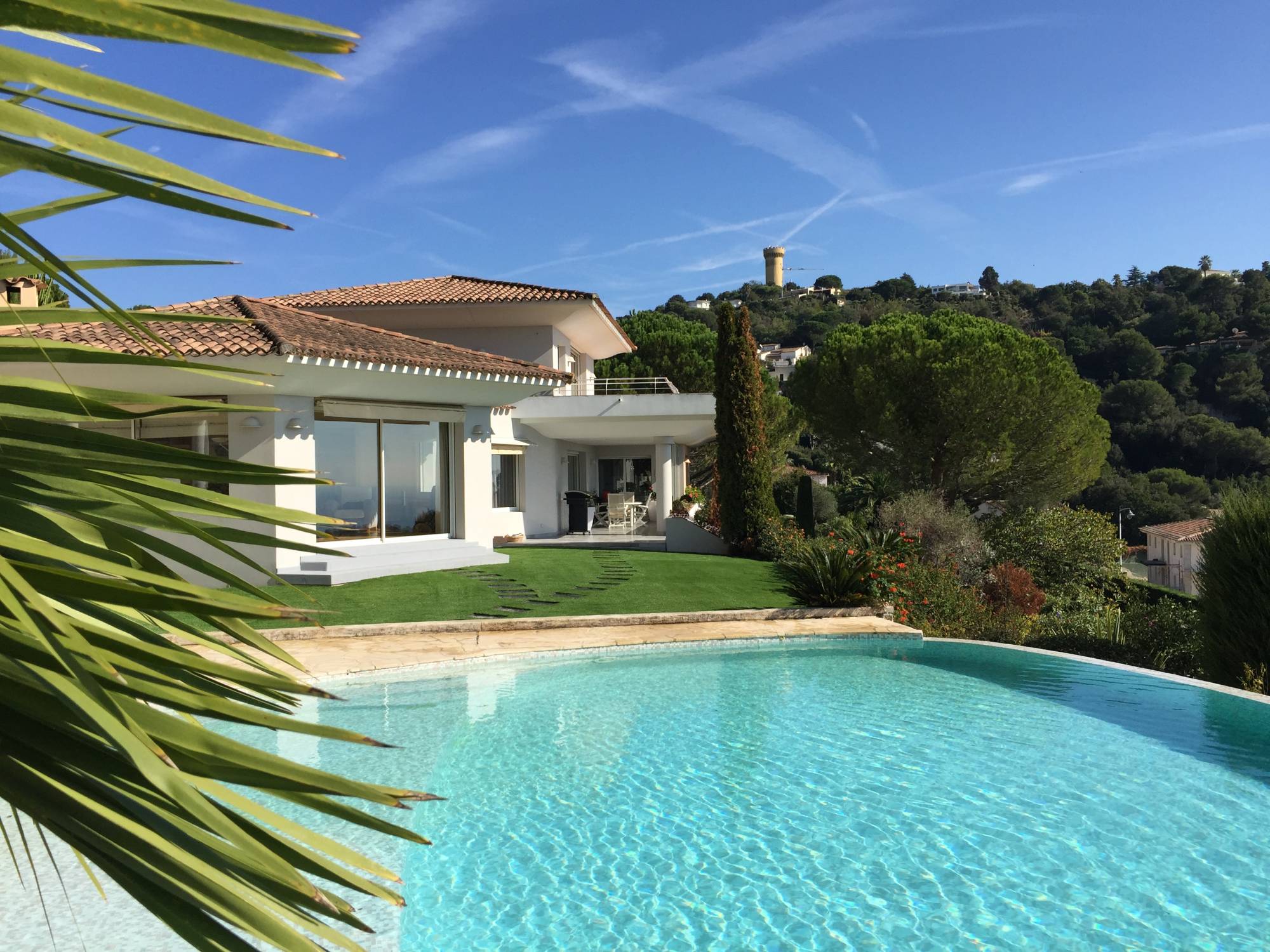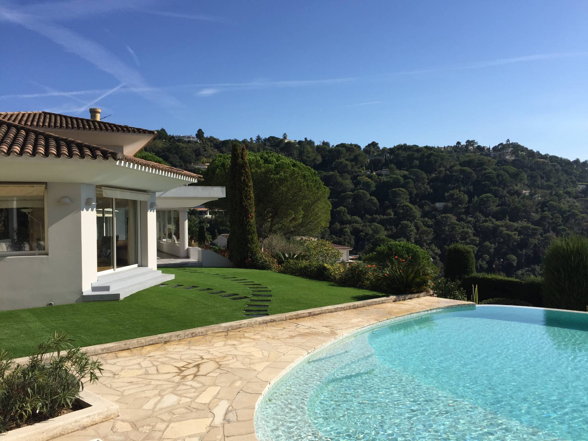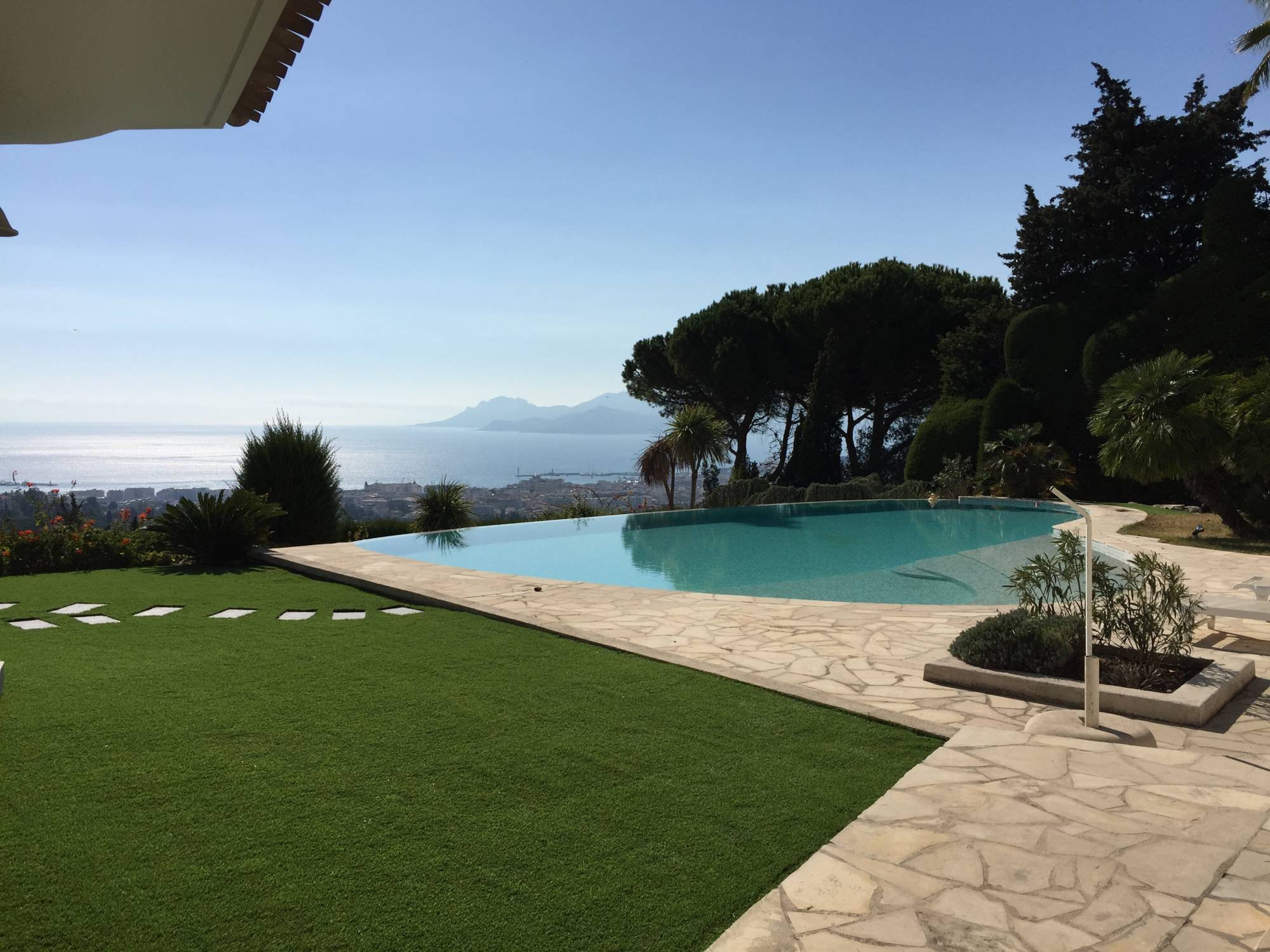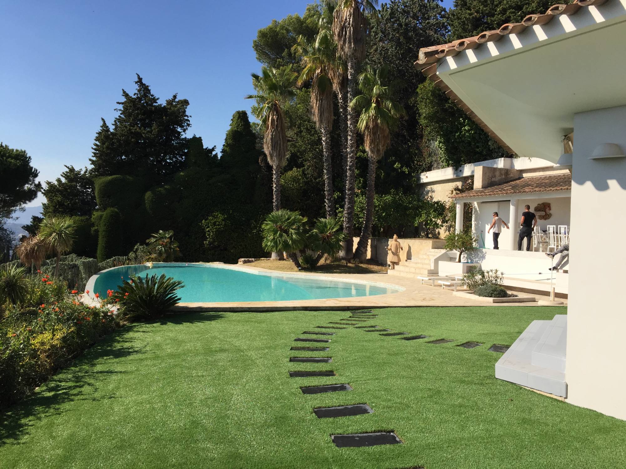 Une belle installation de gazon synthétique haut de gamme pour cette villa disposant d'une magnifique vue sur la baie de Cannes.
