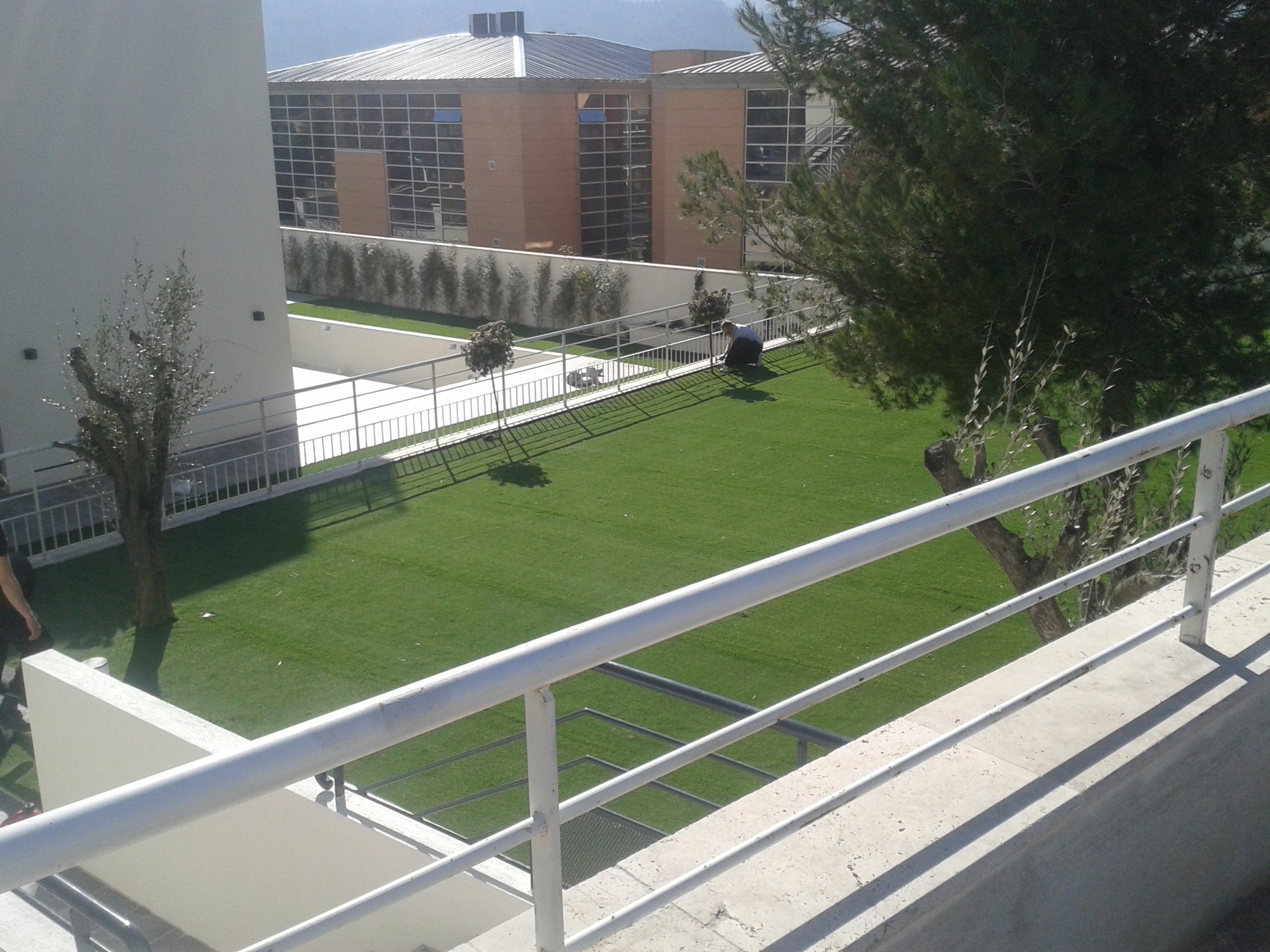 Nos poseurs professionnels ont réalisé la pose de 450 m² de gazon artificiel à mémoire de forme à la Valentine à Marseille.