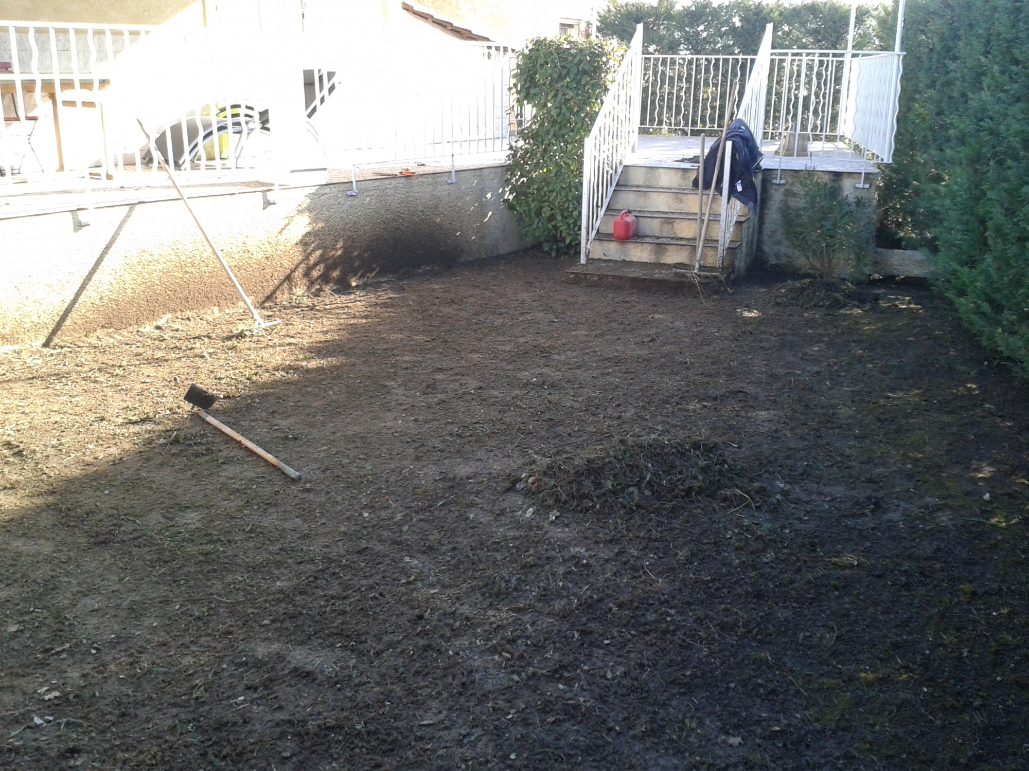 Nous avons tout d’abord pour enlever toute l’herbe existante.