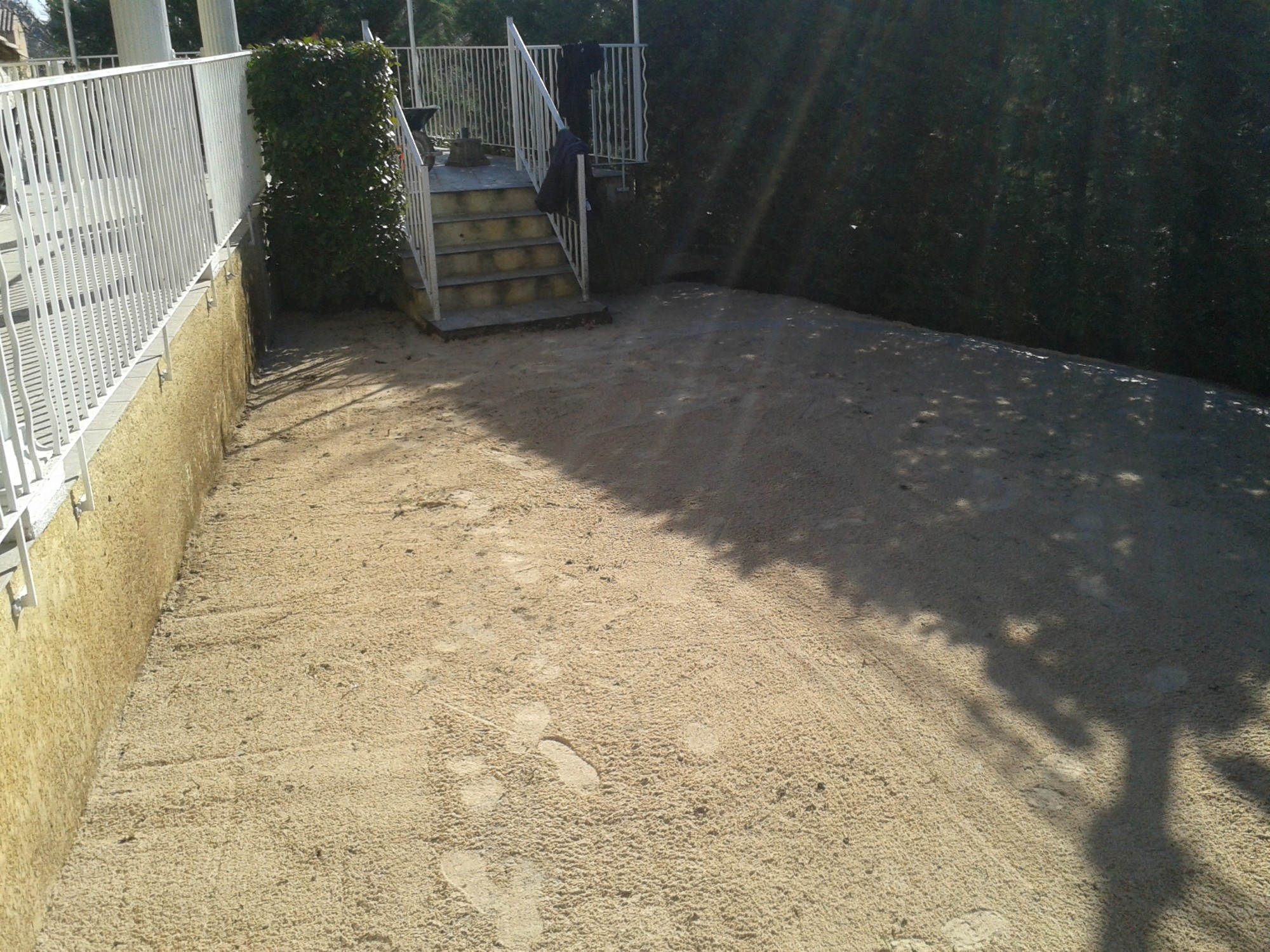 Ensuite nous avons étalé une fine couche de sable calcaire 0.2 sur 2 à 3 cm pour enlever toutes les aspérités du sol.