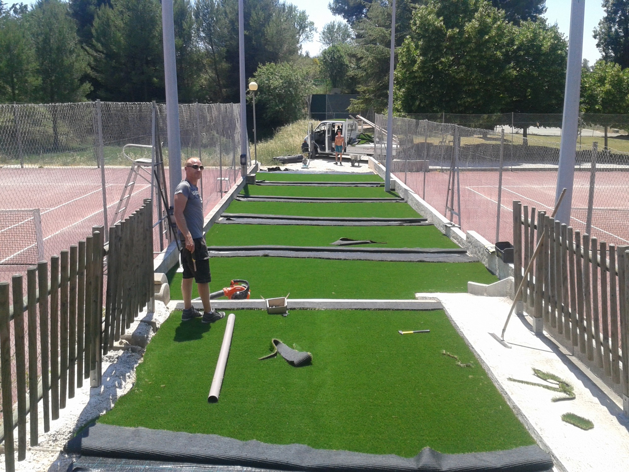 Pose de 500 m² de gazon synthétique dans un tennis club à Allauch entre Aubagne et Marseille. Univers Gazons a réalisé la pose d’environ 500 m² de gazon synthétique à mémoire de forme.