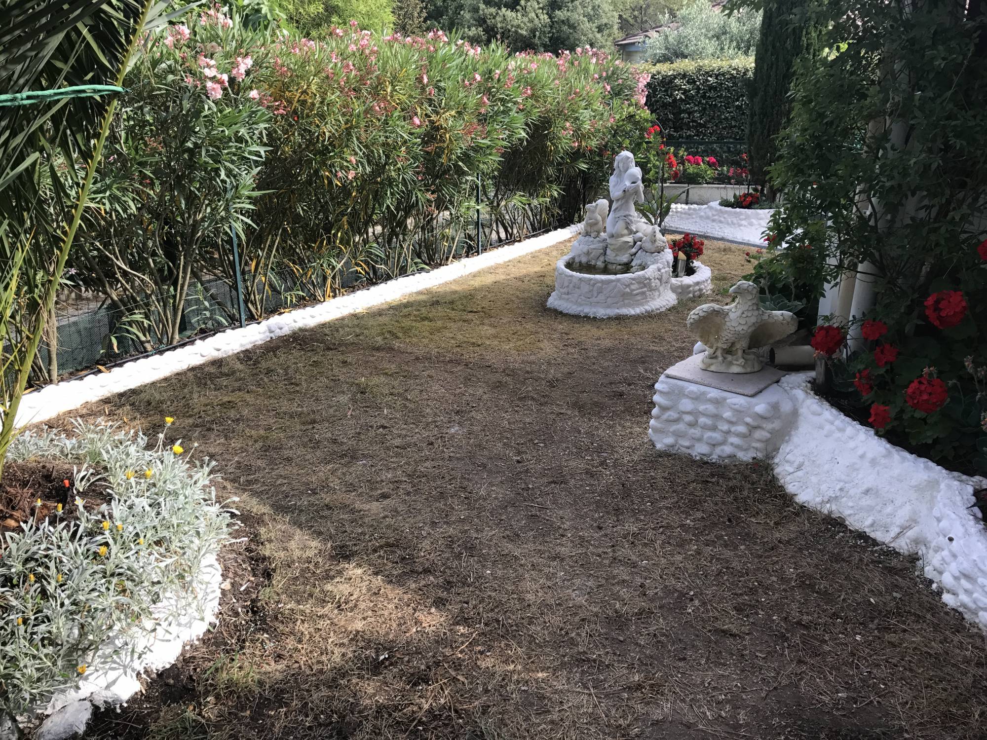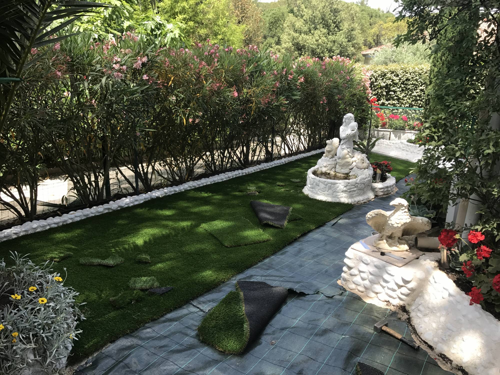 Univers gazons vous présente étape par étape la réalisation en pelouse artificielle d’un jardin à Eguilles dans le département 13 (Bouches du Rhône).