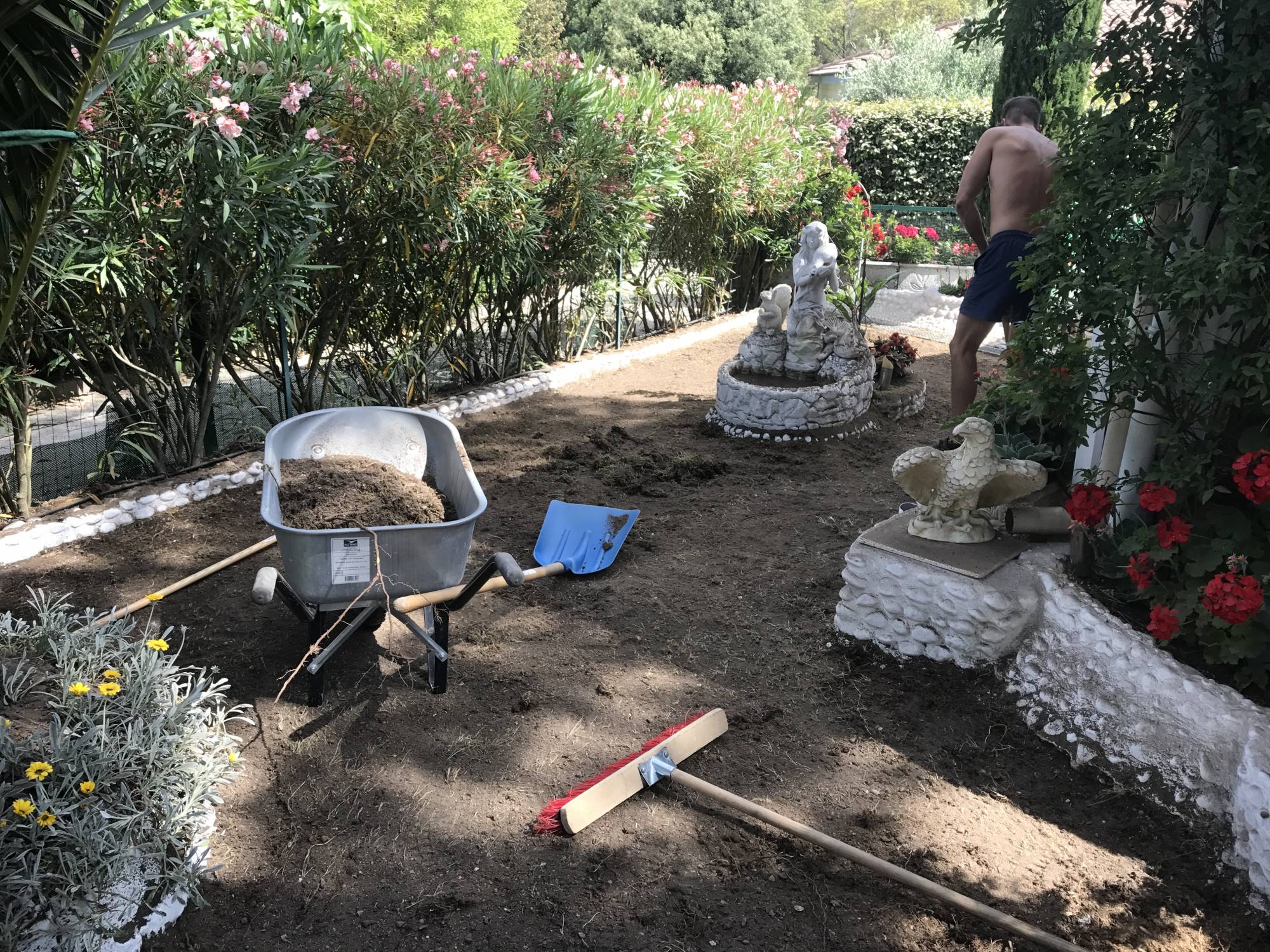 Ici, dans ce jardin d’Eguilles, la zone de chantier ne comportant pas trop d’irrégularités, il n’est pas nécessaire de recourir à l’utilisation de tout-venant.