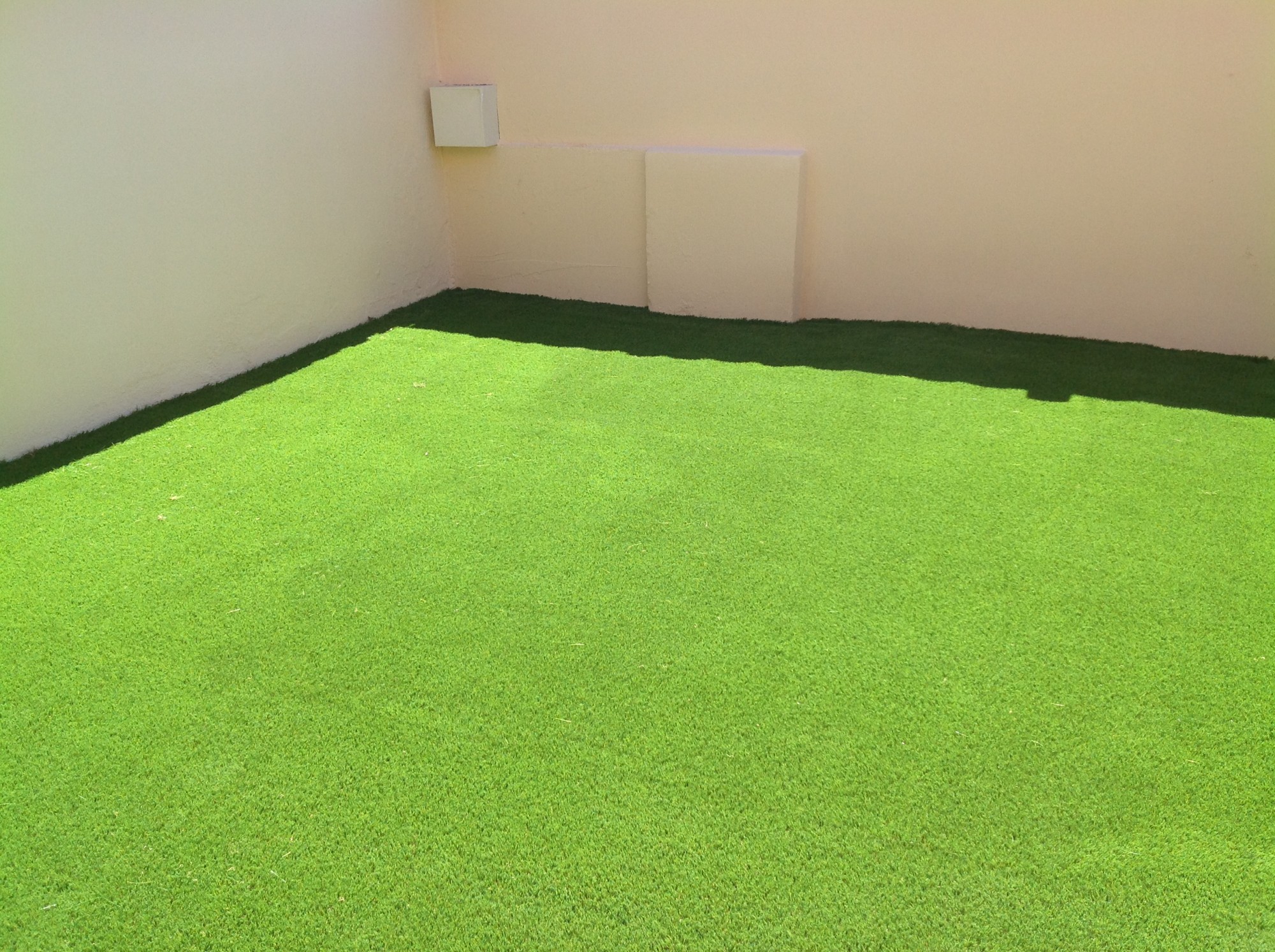 Pour une petite surface très sollicitée, il est très difficile d’entretenir un gazon naturel, c’est pourquoi le client a choisi la pelouse synthétique.