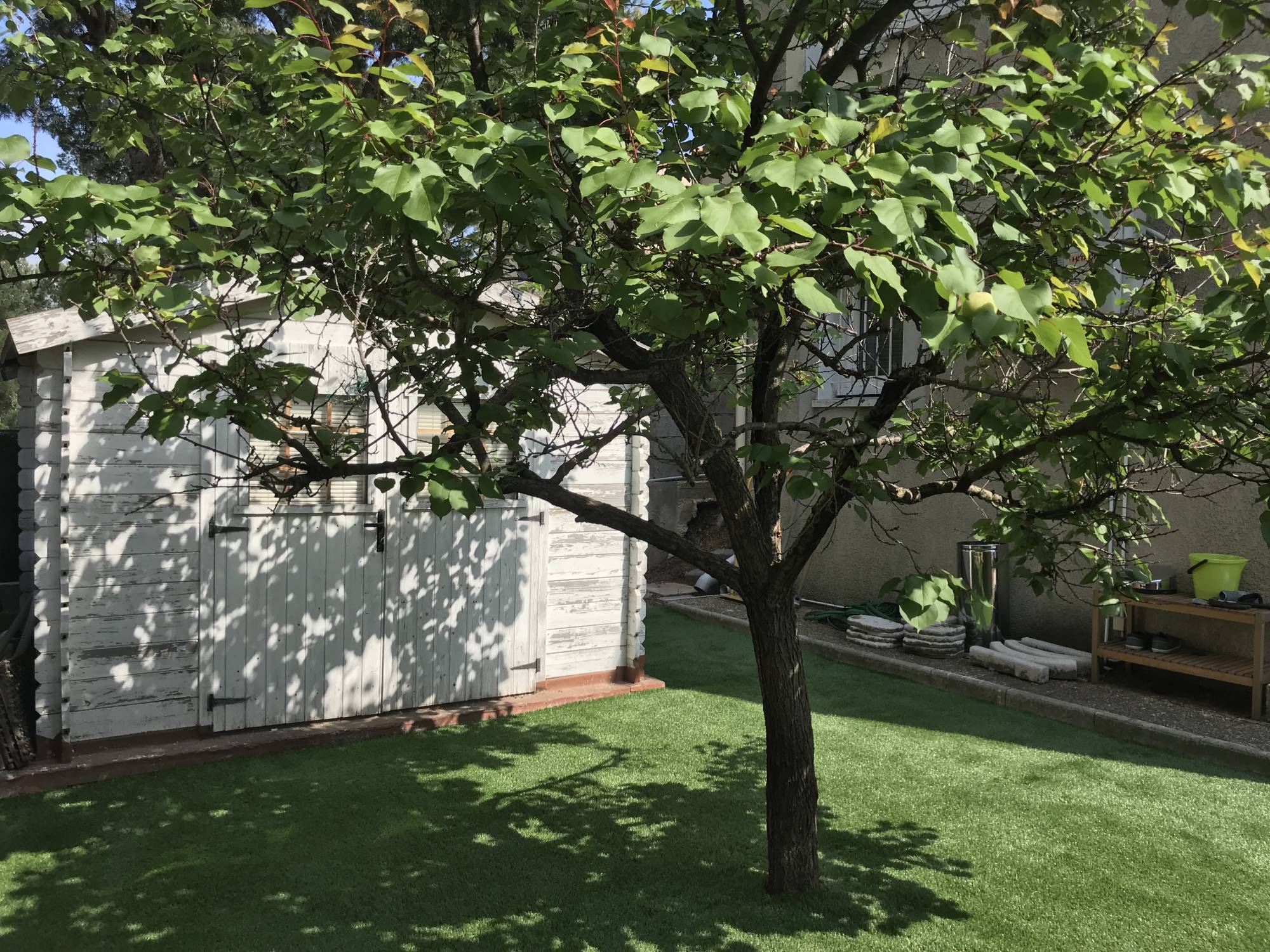 Une fois ce petit jardin des Pennes-Mirabeau protégé, nous sommes passés à la pose du gazon synthétique.
