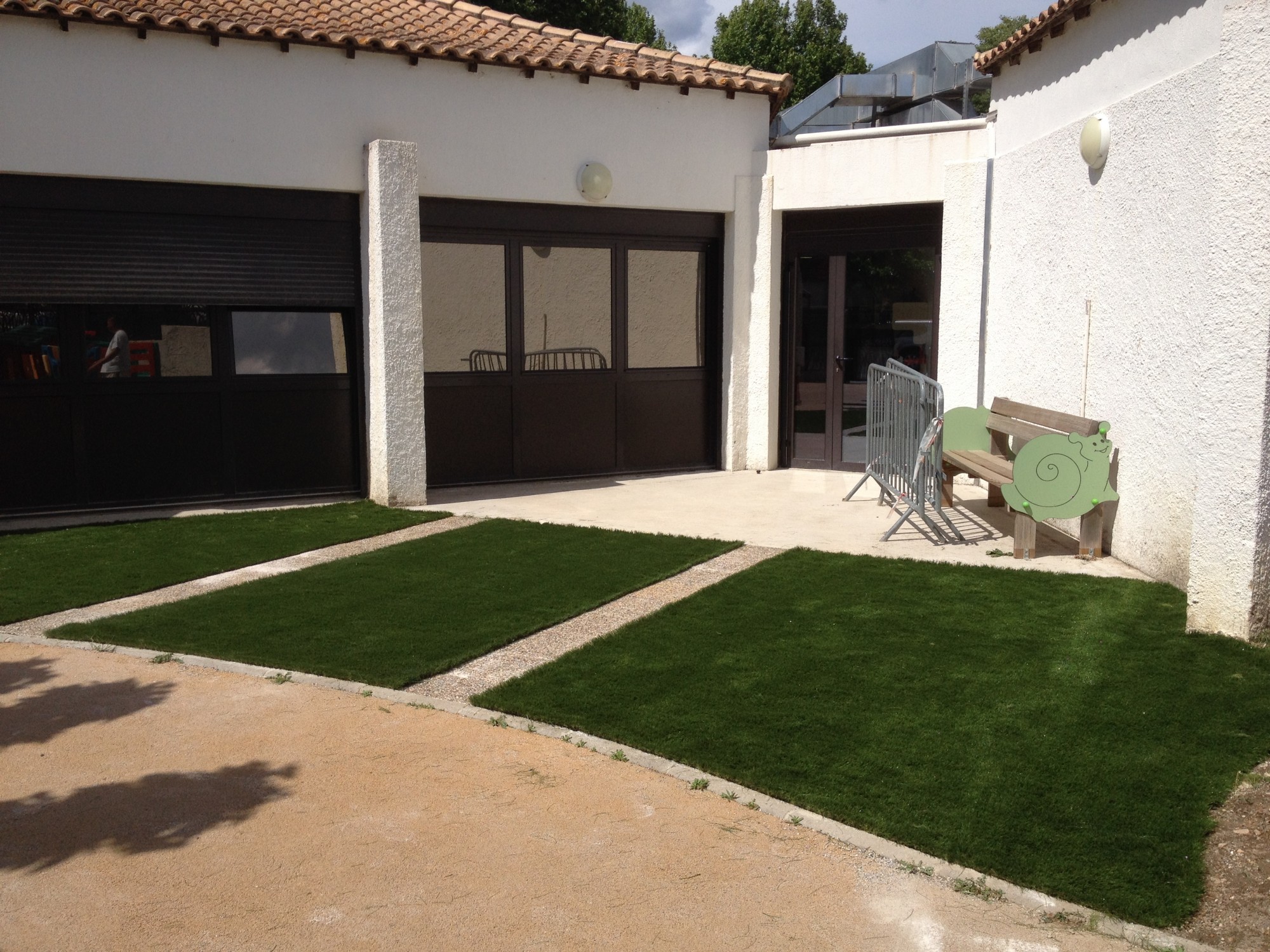 La Mairie de Grans a donc opté pour une solution économique et écologique en aménageant progressivement ses différents espaces verts avec du gazon synthétique.