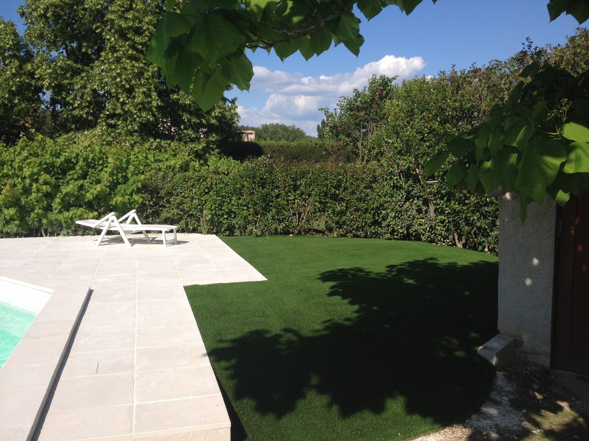 Opter pour un gazon synthétique, c'est choisir la simplicité. Il nécessite peu d'entretien : fini la tonte, le désherbage et les pelouses jaunies en été. Cette solution vous permet de profiter d'un jardin verdoyant tout au long de l'année, sans arrosage, un atout essentiel face aux restrictions d'eau estivales.