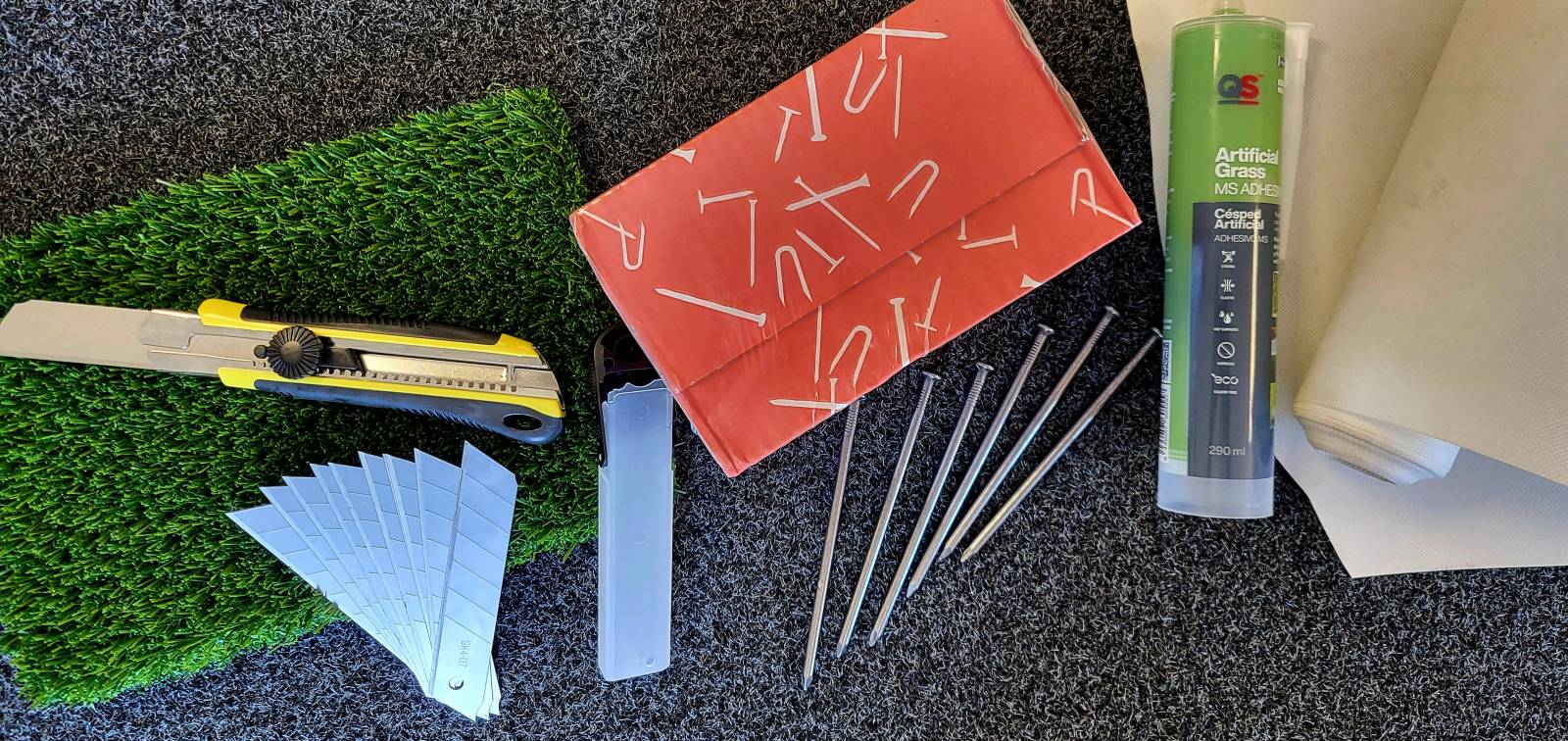 Les accessoires professionnels de pose pour le gazon synthétique :